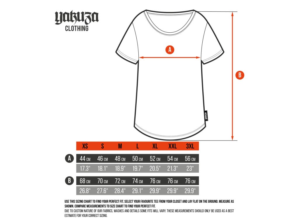Dámské tričko YAKUZA. Ideální pro ležérní styling: Není příliš úzké, ani příliš volné, tak akorát. Toto tričko má žebrovaný kulatý výstřih, zaoblený lem a celoplošný potisk. Je doplněno logem na bočním švu. Prosím, řiďte se níže uvedenými specifikacemi velikostí a pokyny k praní.