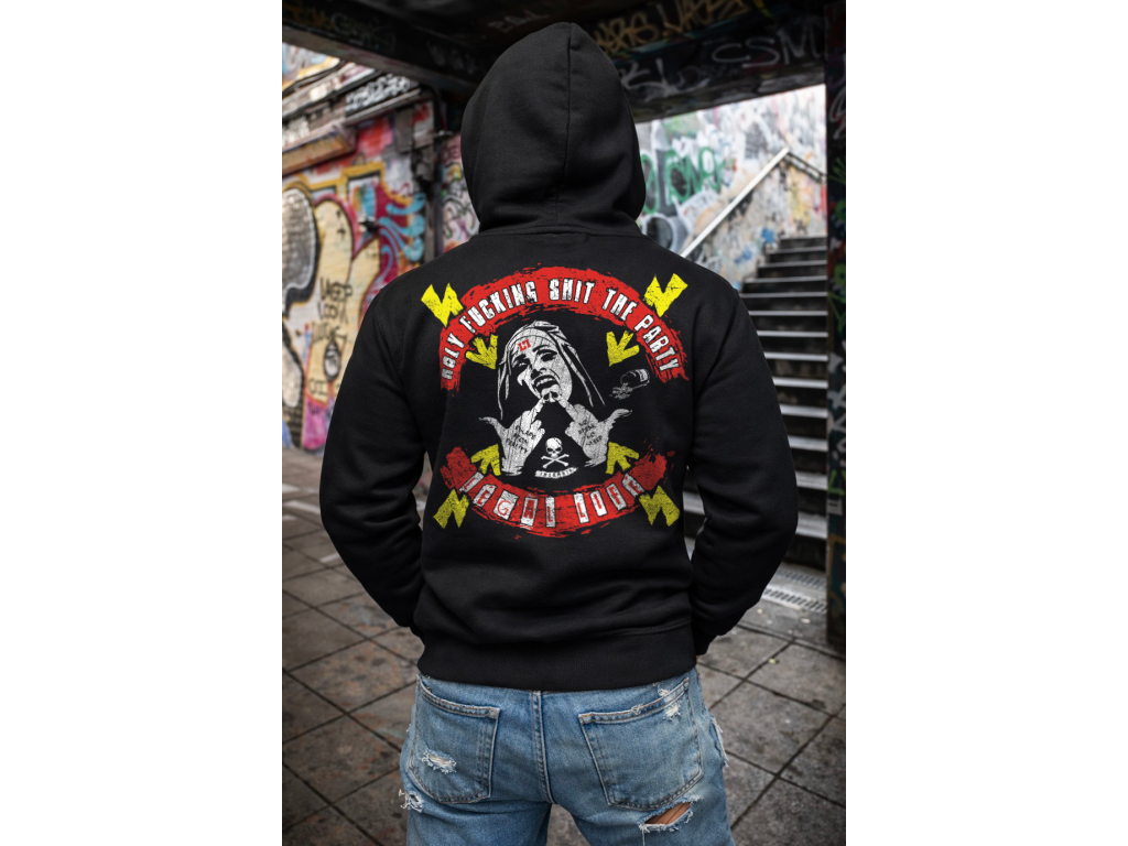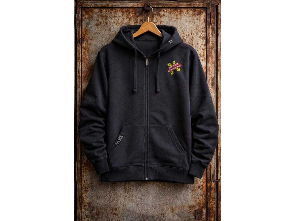 Kapuci zdobí štítek znázorňující logo Legal Life dvěma k sobě otočnými písmeny LL, dole na kapse je další větší štítek s logem a baseballovou pálkou, tyto vychytávky zvedají mikinu na jiný level, každý štítek je vyrobený a ručně našitý u nás v ČR stejně jako potisky. Mikina je velice kvalitní, při výběru textilu pro naší značku Legal Life jsme si dali velice záležet.