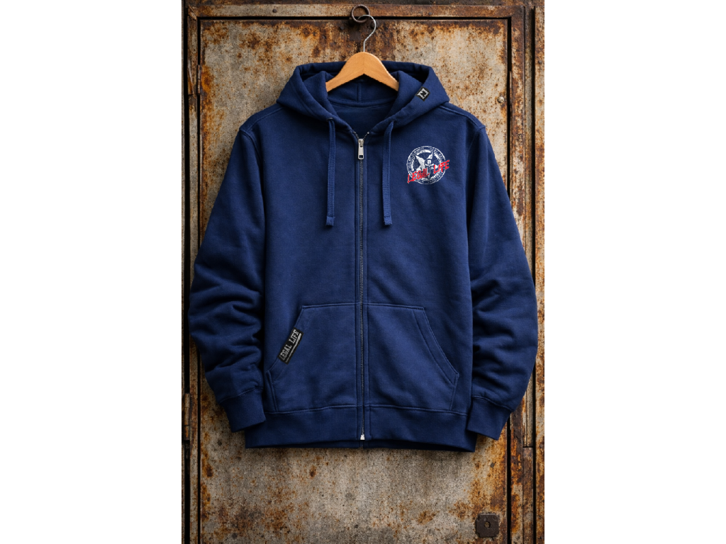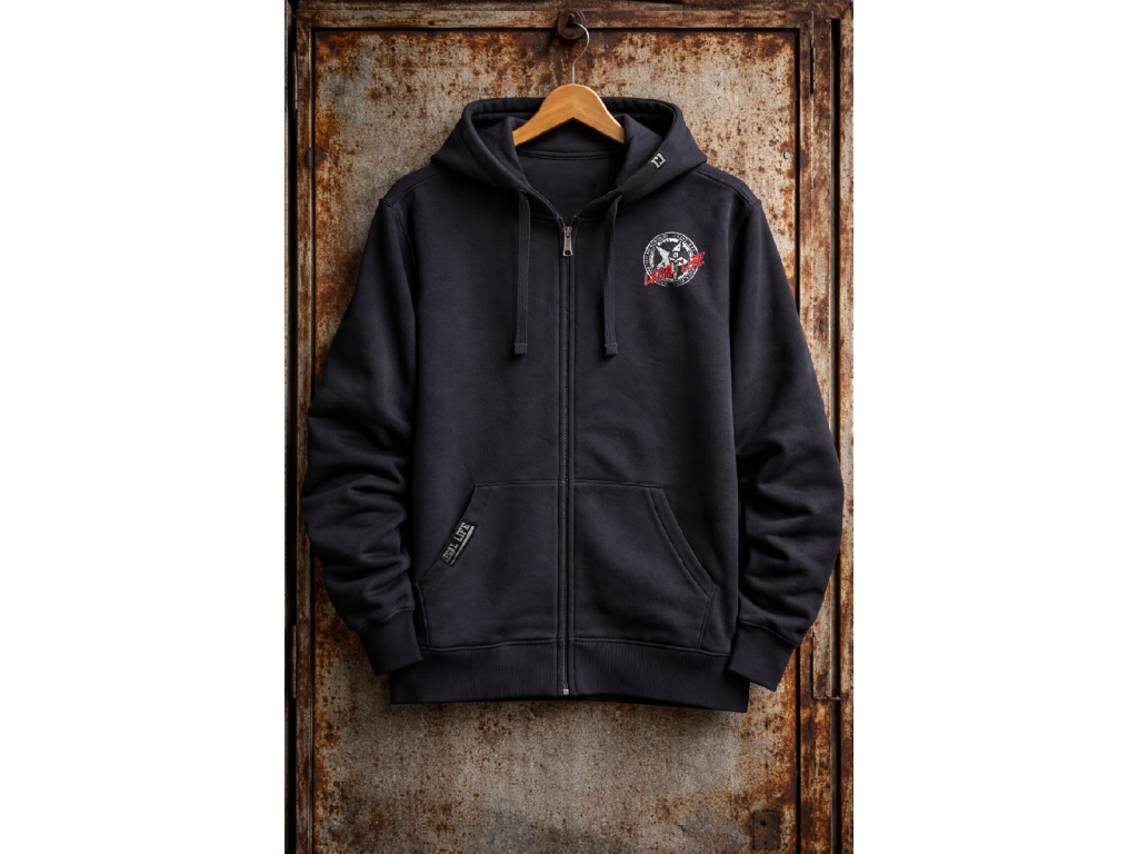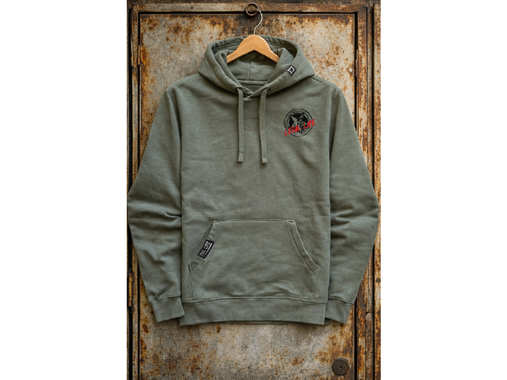 Kapuci zdobí štítek znázorňující logo Legal Life dvěma k sobě otočnými písmeny LL, dole na kapse je další větší štítek s logem a baseballovou pálkou, tyto vychytávky zvedají mikinu na jiný level, každý štítek je vyrobený a ručně našitý u nás  v ČR stejně jako potisky. Mikina je velice kvalitní, při výběru textilu pro naší značku Legal Life jsme si dali velice záležet.