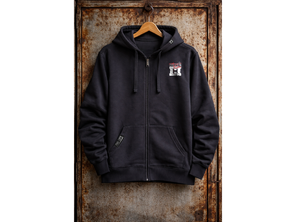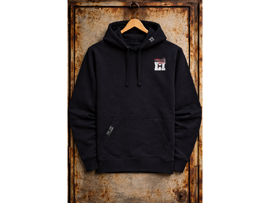 Kapuci zdobí štítek znázorňující logo Legal Life dvěma k sobě otočnými písmeny LL, dole na kapse je další větší štítek s logem a baseballovou pálkou, tyto vychytávky zvedají mikinu na jiný level, každý štítek je vyrobený a ručně našitý u nás  v ČR stejně jako potisky. Mikina je velice kvalitní, při výběru textilu pro naší značku Legal Life jsme si dali velice záležet.