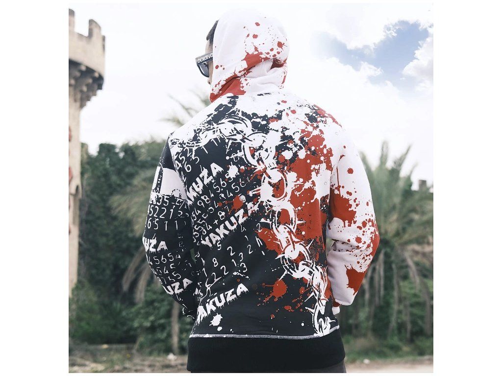 Pánská mikina s kapucí YAKUZA. Tato klasická vysoce kvalitní mikina je pro tuto sezónu nezbytností pro pohodlí. Není ani příliš úzká, ani příliš volná, je tak akorát. Má kapuci se stahovací šňůrkou a žebrované lemování po celé délce. Mikina se navíc vyznačuje úžasnými vintage potisky, logem Yakuza na bočním švu a gumou nad lemem. Sledujte prosím níže uvedené specifikace velikostí a pokyny k praní.