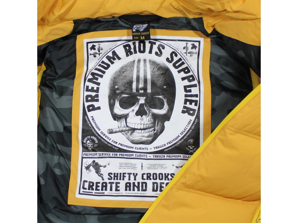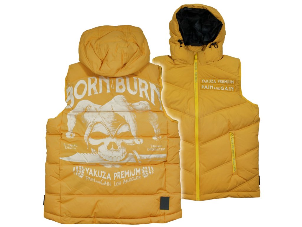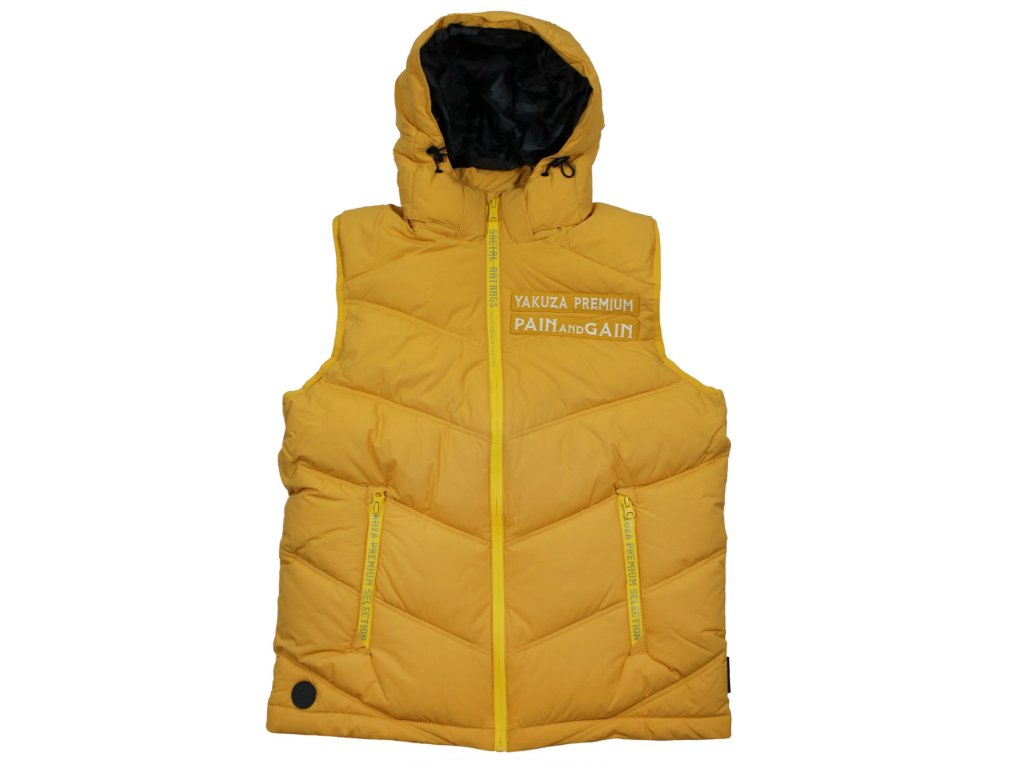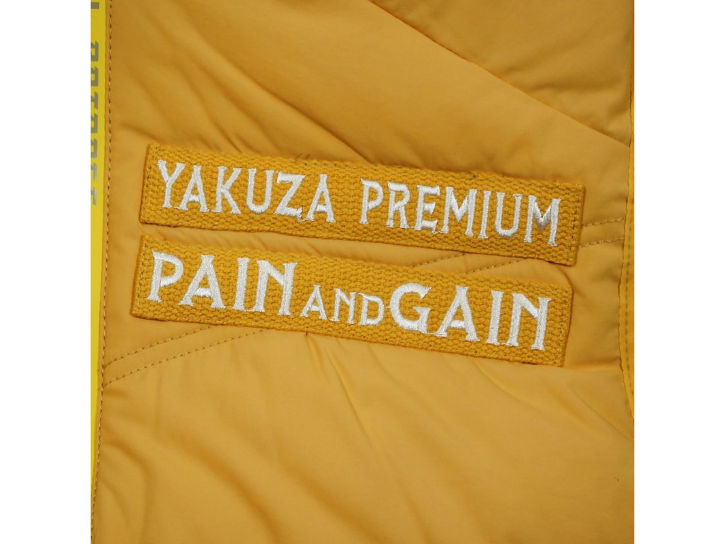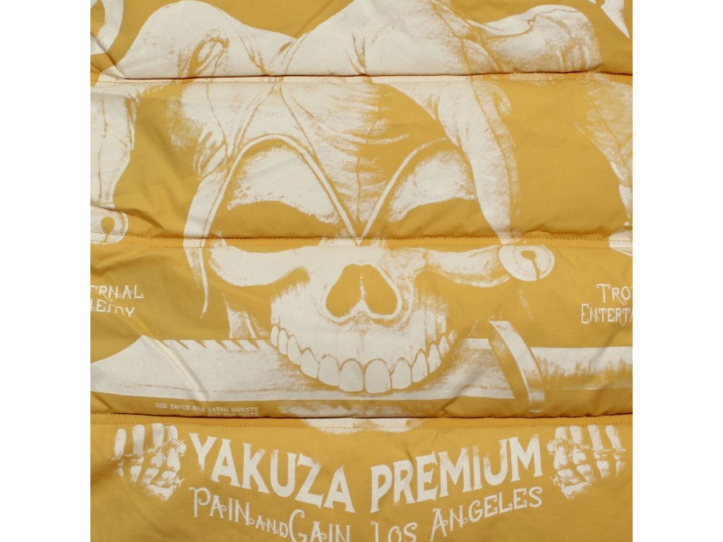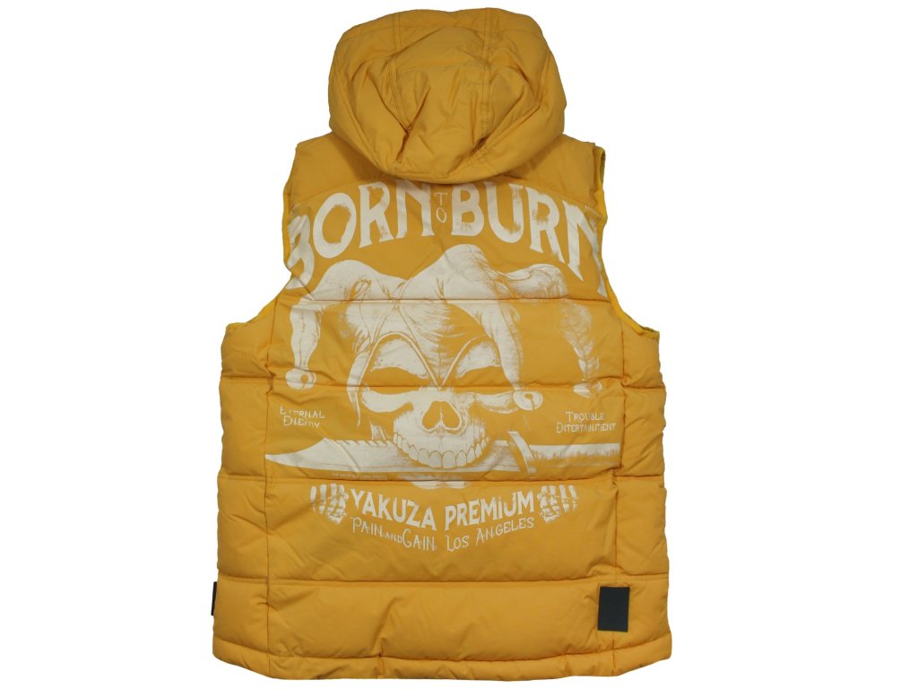 Limitovaná edice vesty 3966 ve žluté barvě od Yakuza Premium pro muže. Tato prošívaná vesta vás nejen zahřeje, ale také vypadá neuvěřitelně stylově. Má odnímatelnou kapuci, dvojitou nášivku na levé straně hrudi a dvě přední kapsy. Na zadní straně je velký potisk s harlekýnem. Tuto prošívanou vestu dělají výjimečnou potištěné zipy. Vesta má poměrně volný střih a odpovídá velikosti.