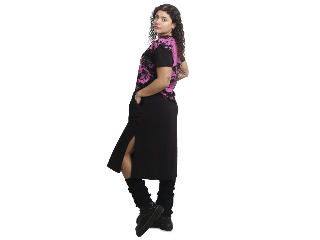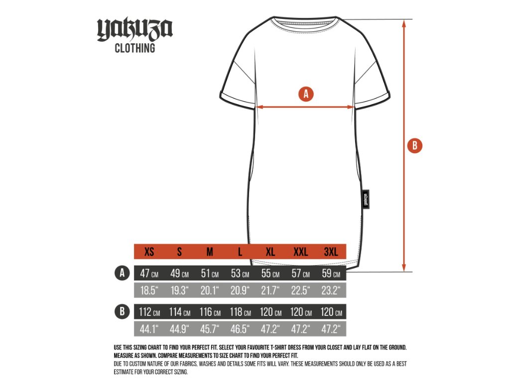 Dámské šaty YAKUZA LOST SKULL. Jako každodenní kousek oblečení jsou tyto tričkové šaty perfektním doplňkem pro jakékoli plány v této sezóně. Tyto midi šaty mají volný střih: Ne příliš úzké, ne příliš volné, tak akorát. Mají kulatý výstřih s krátkými rukávy a spuštěnými rameny a jsou zakončeny vintage potiskem, logem Yakuza na bočním švu a gumovou nášivkou s logem u lemu. Prosím, řiďte se níže uvedenými specifikacemi velikostí a pokyny k praní.