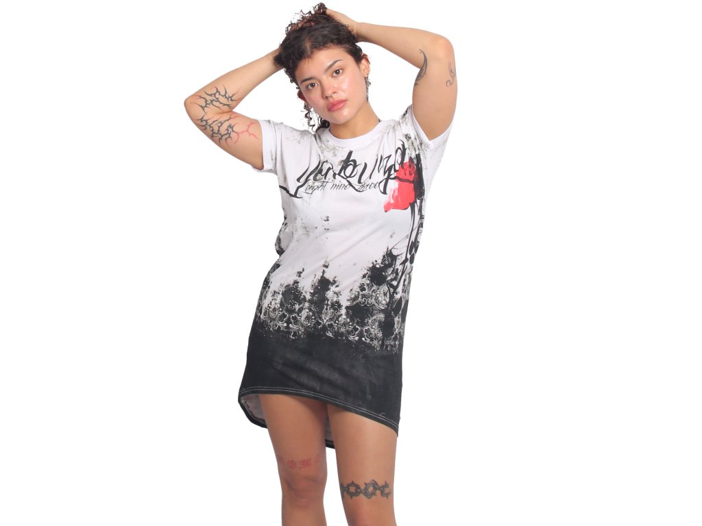 Dámské šaty YAKUZA. Dokonalé tričkové šaty této sezóny jsou uvolněné: Ne příliš úzké, ne příliš volné, tak akorát. Vyznačuje se klasickým designem s krátkými rukávy, kulatým výstřihem a spadlým lemem. Dokončeno s vintage potiskem a štítkem s logem Yakuza na bočním švu. Věnujte prosím pozornost našim specifikacím velikosti a pokynům pro praní níže.